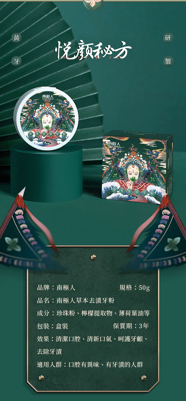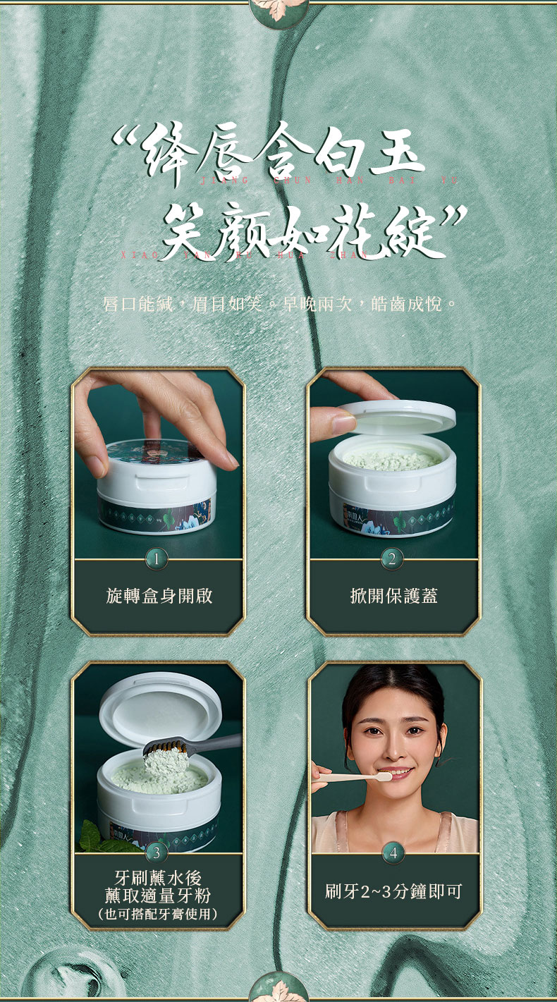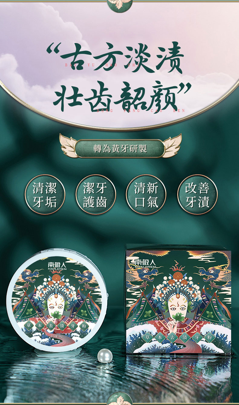 南極人國潮薄荷牙粉草本去漬洗牙去黃洗白牙漬牙垢結石口臭潔牙粉、去黃口臭洗牙神器、去黃牙牙粉、美白去黃洗牙粉,高效潔齒成分能發揮雙重去漬功能,令齒面晶亮潔白。